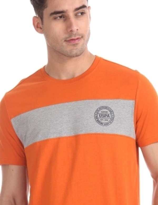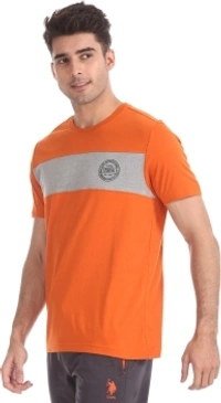U.S. POLO ASSN. Solid Men Round Neck Orange T-Shirt
