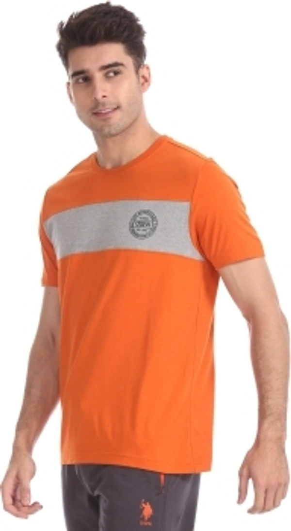 U.S. POLO ASSN. Solid Men Round Neck Orange T-Shirt